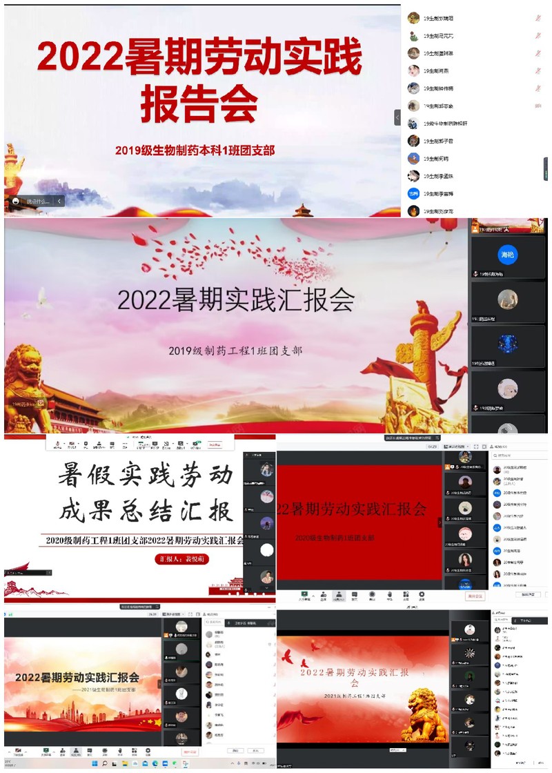9月18日,医药工程学院各团支部线上举办2022年暑期劳动实践成果汇报会。