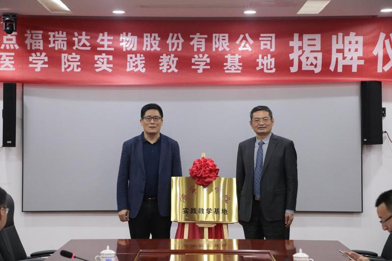 2023年4月4日上午,医药工程学院实践教学基地揭牌仪式在山东焦点福瑞达生物股份有限公司举行。揭牌仪式由山东焦点福瑞达生物股份有限公司人力资源中心副总经理李取泉主持,山东福瑞达医药集团党委委员、副总经理,山东焦点福瑞达生物股份有限公司董事长郑德强,济宁医学院实践教学管理处处长高鸿共同为实践教学基地揭牌。济宁医学院实践教学管理处副处长王忠华,医药工程学院副院长谭文彬,医药工程学院党总支副书记王亚莉,山东焦点福瑞达生物股份有限公司驻企选派干部副总经理张孝卫等人以及实习学生参加了揭牌仪式。