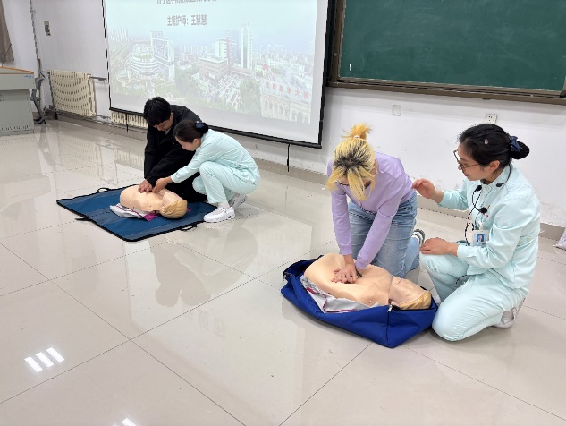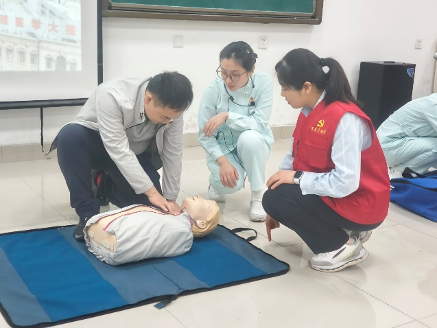 附院门诊部专家讲解了相关急救知识,并通过实操训练,让师生亲身体验了心肺复苏、海姆立克急救法等急救技能。活动现场,师生们积极参与,学习氛围浓厚,通过专家的悉心指导和实操练习,大家纷纷表示对急救知识有了更深入地了解。